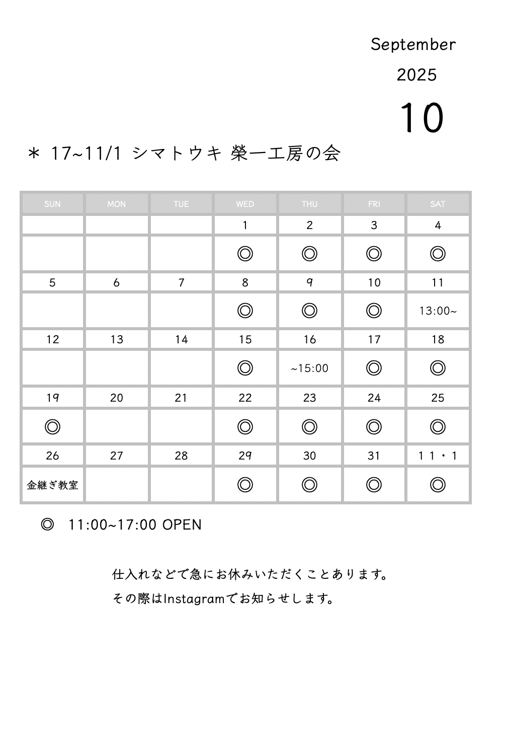 今月の実店舗の予定です。